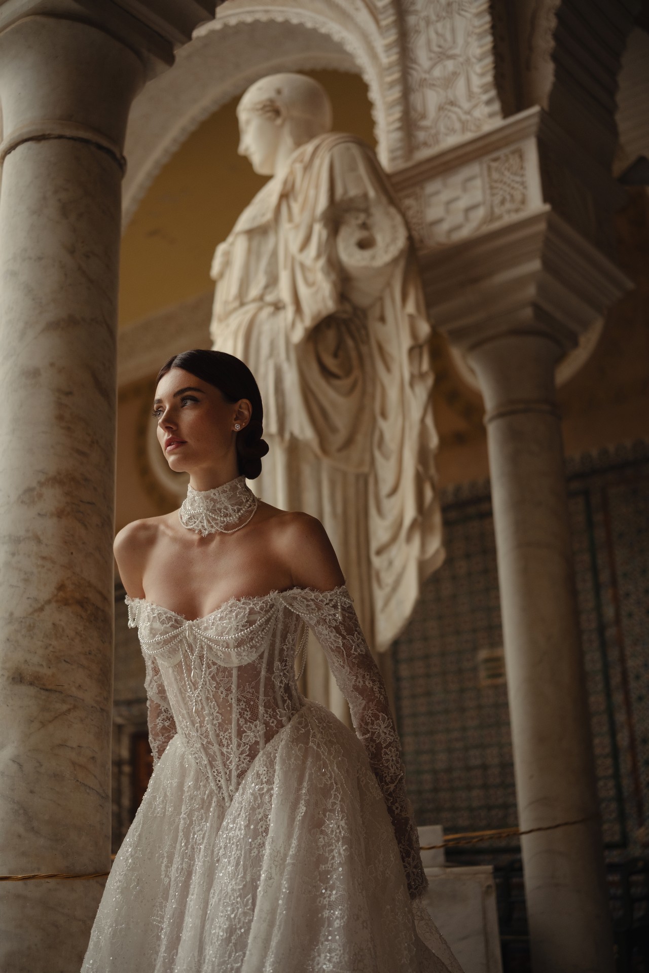 Berta Couture kolekcija Seville za 2026. godinu. Vjenčanica 26-05 apsolutno senzacionalni model A kroja od najfinije čipke te dodatkom perlica za onaj savršeni završni detalj. Berta couture luksuzne vjenčanice za tvoj poseban dan.